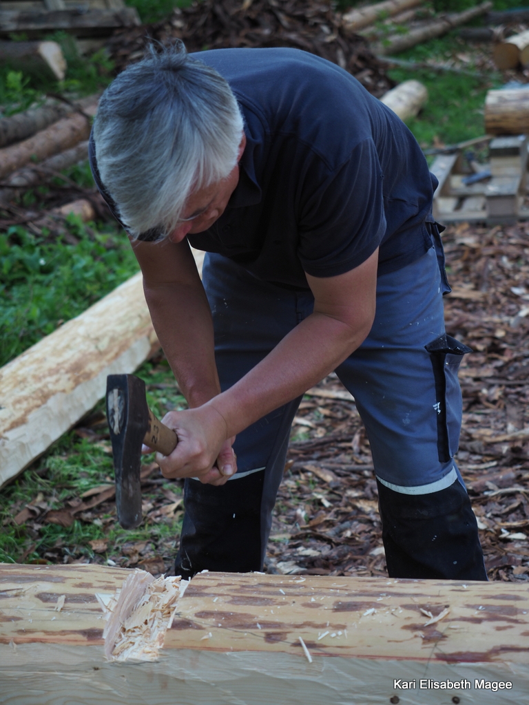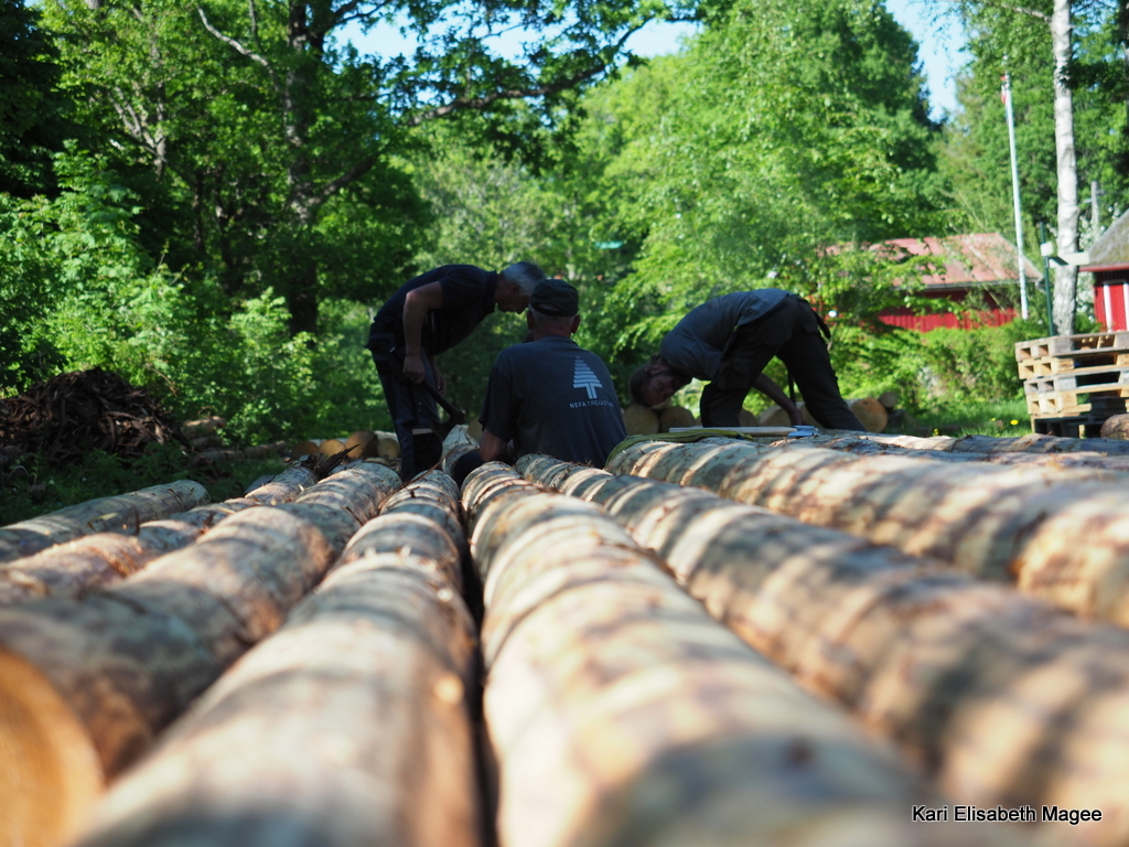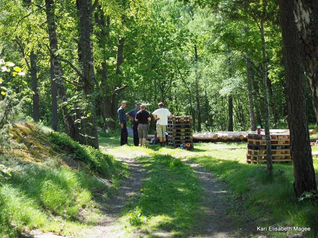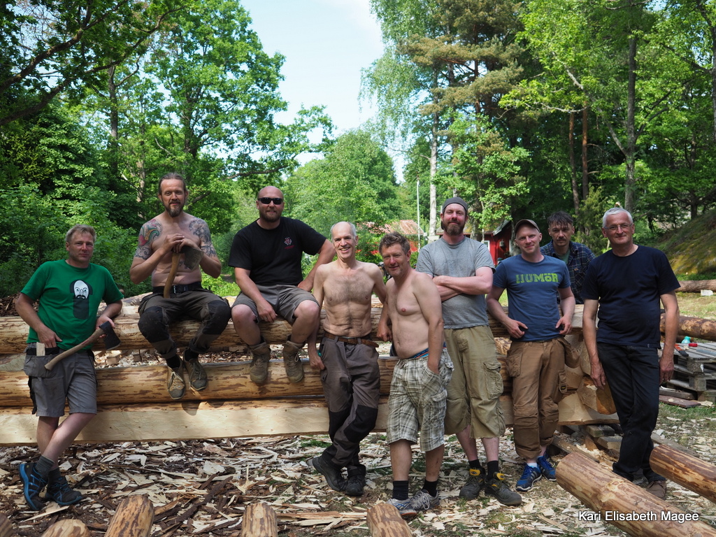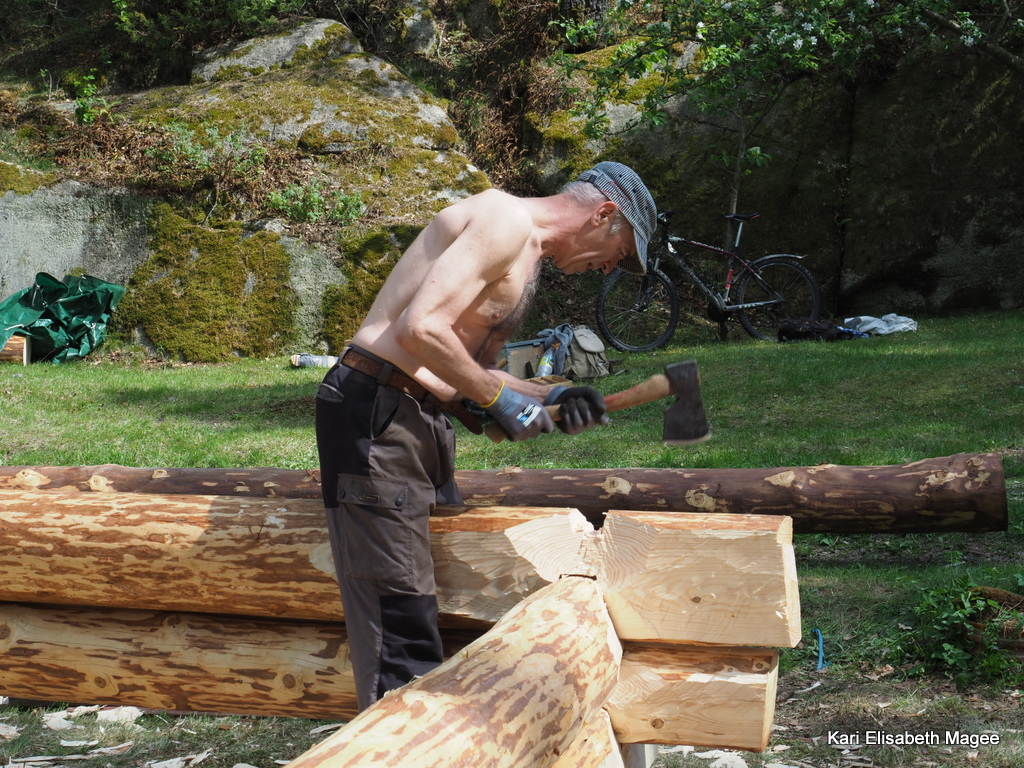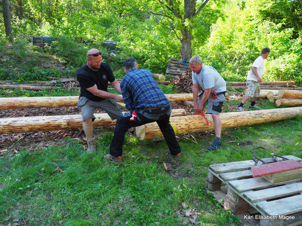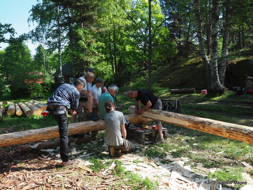 Deltagerne kom alle til lunsj og etter at magen ble mett var det tid for alvor. Stokker ble hentet frem og laftingen kunne begynne.