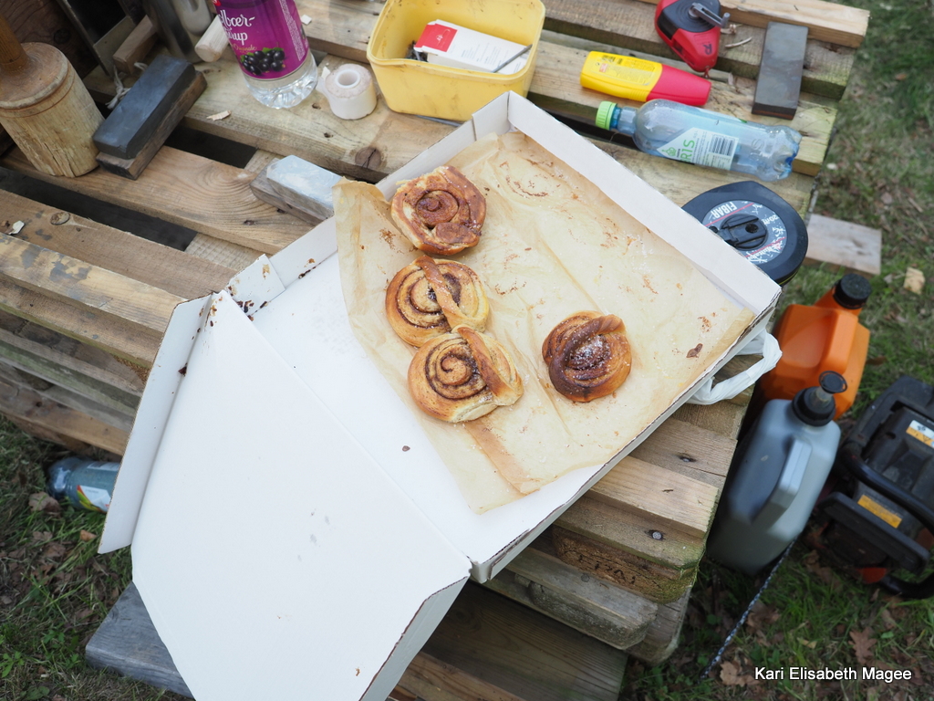 Innimellom må man spise. Vi var så heldige å få kanelsnurrer fra Veierland bakeri. Mumsi! Brødet som ble spist til frokost og lunsj var også fra bakeriet og det er bare også kjempemumsi.